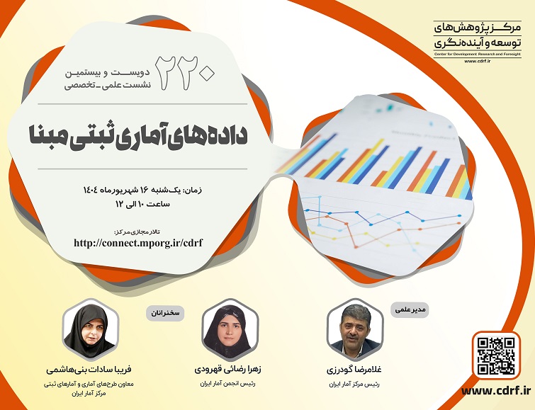 دویست و بیستمین نشست علمی – تخصصی مرکز پژوهش های توسعه و آینده نگری، تحت عنوان داده های آماری ثبتی مبنا، به صورت مجازی برگزار می گردد.