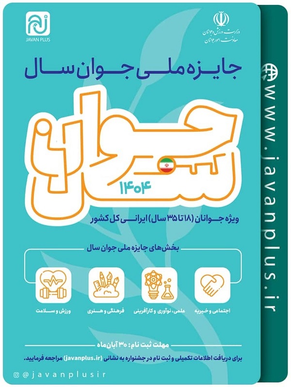 جایزه ملی جوان ۱۷ آبان ۱۴۰۴ | ۱۳:۲۴ کد : ۵۶۱۱۵ اطلاعیه ارسال به دیگران نام شما ایمیل شما ایمیل دریافتکننده ارسال انصراف تعداد بازدید:۱۳۴۸ جایزه ملی جوان سال ۱۴۰۴ فراخوان شرکت در جایزه ملی جوان سال ۱۴۰۴ منتشر شد.