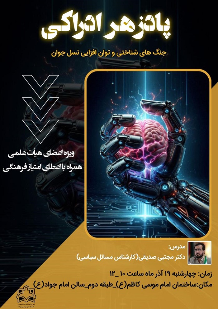 کارگاه آموزشی ویژه اعضای هیأت علمی دانشگاه با موضوع جنگ های شناختی و توان افزایی نسل جوان برگزار می گردد.